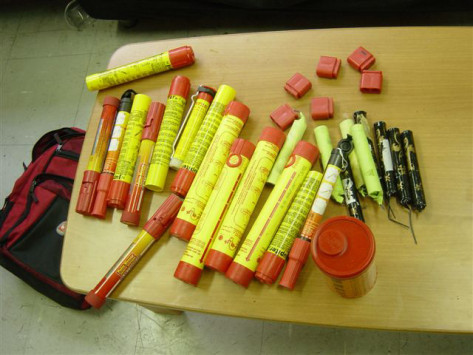 Στις φωτογραφίες που ακολουθούν μπορείτε να δείτε τα ευρήματα που ανακάλυψε η ΕΛ.ΑΣ. σε τρεις, μόνο, “γιάφκες” οπαδών. Αν είστε από αυτούς που έχουν το θάρρος, ακόμα να πηγαίνουν στα γήπεδα, ίσως θα πρέπει να το ξανασκεφτείτε.
